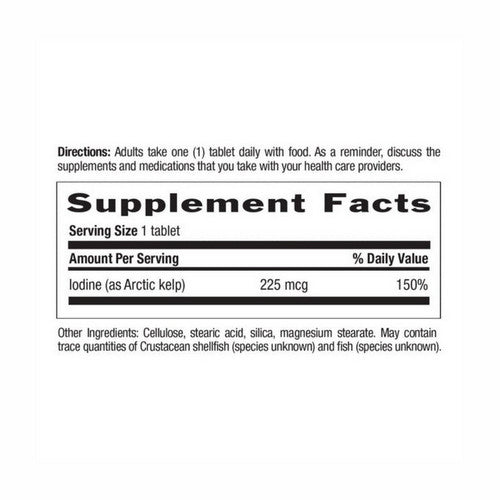 | Iodine (as Norwegian kelp) | 225 mcg | 150% |