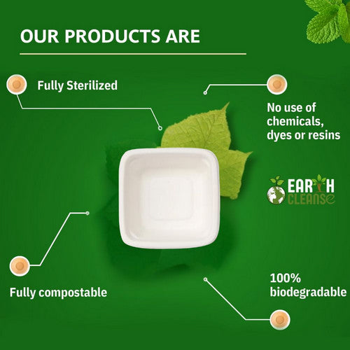 Bagasse 4-Inch square bowls are eco-friendly made from sugarcane pulp, offer a stylish and sustainable solution for serving appetizers, desserts, and side dishes.