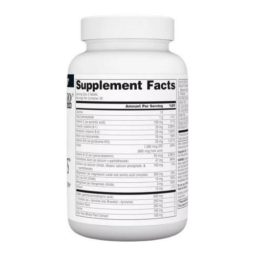 {"id":6869113045077,"title":"Source Naturals, Calm Thoughts, 90 Tabs","handle":"calm-thoughts-6175","description":"\u003cstrong\u003eProduct Description\u003c\/strong\u003e\u003cbr\u003e\u003cbr\u003e \u003cdiv class=\"prodDescCls\"\u003e\u003cul\u003e\n\u003cli\u003eBioAlign \u003c\/li\u003e\n\u003cli\u003eConsidered as Dietary Supplement\u003c\/li\u003e\n\u003cli\u003eHelps Reduce Anxiety \u0026amp; Stress \u003c\/li\u003e\n\u003cli\u003eSupports Calm Focus\u003c\/li\u003e\n\u003c\/ul\u003e\u003c\/div\u003e \u003cbr\u003e\u003cbr\u003e\u003cstrong\u003eProduct Benefits\u003c\/strong\u003e\u003cbr\u003e\n\t\u003cbr\u003e \u003cbr\u003e\u003cbr\u003e\u003cstrong\u003eIngredients\u003c\/strong\u003e\u003cbr\u003e\u003cbr\u003e \u003cdiv class=\"prodSupCls\"\u003e\u003ctable width=\"100%\" cellspacing=\"0\" cellpadding=\"3\"\u003e\n\u003ctr\u003e\u003ctd colspan=\"3\"\u003e\n\u003cstrong style=\"font-size:16px;\"\u003eSupplement Facts\u003c\/strong\u003e\u003cspan class=\"subSpan\"\u003e\u003cstrong\u003eServing Size:\u003c\/strong\u003e 3 Tablets\u003c\/span\u003e\u003cspan class=\"subSpan\"\u003e\u003cstrong\u003eServings per Container:\u003c\/strong\u003e 30\u003c\/span\u003e\n\u003c\/td\u003e\u003c\/tr\u003e\n\u003ctr\u003e\n\u003ctd width=\"70%\"\u003e \u003c\/td\u003e\n\u003ctd width=\"15%\"\u003e\u003cstrong\u003eAmount Per Serving\u003c\/strong\u003e\u003c\/td\u003e\n\u003ctd width=\"15%\"\u003e\u003cstrong\u003e%DV\u003c\/strong\u003e\u003c\/td\u003e\n\u003c\/tr\u003e\n\u003ctr\u003e\n\u003ctd\u003eCalories\u003c\/td\u003e\n\u003ctd\u003e10\u003c\/td\u003e\n\u003ctd\u003e \u003c\/td\u003e\n\u003c\/tr\u003e\n\u003ctr\u003e\n\u003ctd\u003eTotal Carbohydrate\u003c\/td\u003e\n\u003ctd\u003e1 g\u003c\/td\u003e\n\u003ctd\u003e\u0026lt;1%\u003c\/td\u003e\n\u003c\/tr\u003e\n\u003ctr\u003e\n\u003ctd\u003eVitamin C (as ascorbic acid)\u003c\/td\u003e\n\u003ctd\u003e100 mg\u003c\/td\u003e\n\u003ctd\u003e167%\u003c\/td\u003e\n\u003c\/tr\u003e\n\u003ctr\u003e\n\u003ctd\u003eThiamin (vitamin B-1)\u003c\/td\u003e\n\u003ctd\u003e25 mg\u003c\/td\u003e\n\u003ctd\u003e1,667%\u003c\/td\u003e\n\u003c\/tr\u003e\n\u003ctr\u003e\n\u003ctd\u003eRiboflavin (vitamin B-2)\u003c\/td\u003e\n\u003ctd\u003e25 mg\u003c\/td\u003e\n\u003ctd\u003e1,470%\u003c\/td\u003e\n\u003c\/tr\u003e\n\u003ctr\u003e\n\u003ctd\u003eNiacinamide\u003c\/td\u003e\n\u003ctd\u003e25 mg\u003c\/td\u003e\n\u003ctd\u003e125%\u003c\/td\u003e\n\u003c\/tr\u003e\n\u003ctr\u003e\n\u003ctd\u003eVitamin B-6 (as pyridoxine HCl)\u003c\/td\u003e\n\u003ctd\u003e25 mg\u003c\/td\u003e\n\u003ctd\u003e1,250%\u003c\/td\u003e\n\u003c\/tr\u003e\n\u003ctr\u003e\n\u003ctd\u003eFolate (as folic acid)\u003c\/td\u003e\n\u003ctd\u003e800 mcg\u003c\/td\u003e\n\u003ctd\u003e200%\u003c\/td\u003e\n\u003c\/tr\u003e\n\u003ctr\u003e\n\u003ctd\u003eVitamin B-12 (as cyanocobalamin)\u003c\/td\u003e\n\u003ctd\u003e30 mcg\u003c\/td\u003e\n\u003ctd\u003e500%\u003c\/td\u003e\n\u003c\/tr\u003e\n\u003ctr\u003e\n\u003ctd\u003ePantothenic Acid (as calcium D-pantothenate)\u003c\/td\u003e\n\u003ctd\u003e50 mg\u003c\/td\u003e\n\u003ctd\u003e500%\u003c\/td\u003e\n\u003c\/tr\u003e\n\u003ctr\u003e\n\u003ctd\u003eCalcium (as calcium citrate)\u003c\/td\u003e\n\u003ctd\u003e169 mg\u003c\/td\u003e\n\u003ctd\u003e17%\u003c\/td\u003e\n\u003c\/tr\u003e\n\u003ctr\u003e\n\u003ctd\u003eMagnesium (as magnesium oxide and chelate)\u003c\/td\u003e\n\u003ctd\u003e350 mg\u003c\/td\u003e\n\u003ctd\u003e88% \u003c\/td\u003e\n\u003c\/tr\u003e\n\u003ctr\u003e\n\u003ctd\u003eZinc (as zinc citrate)\u003c\/td\u003e\n\u003ctd\u003e15 mg\u003c\/td\u003e\n\u003ctd\u003e100%\u003c\/td\u003e\n\u003c\/tr\u003e\n\u003ctr\u003e\n\u003ctd\u003eManganese (as manganese chelate)\u003c\/td\u003e\n\u003ctd\u003e3 mg\u003c\/td\u003e\n\u003ctd\u003e150%\u003c\/td\u003e\n\u003c\/tr\u003e\n\u003ctr\u003e\n\u003ctd\u003eSodium\u003c\/td\u003e\n\u003ctd\u003e5 mg\u003c\/td\u003e\n\u003ctd\u003e\u0026lt;1%\u003c\/td\u003e\n\u003c\/tr\u003e\n\u003ctr\u003e\n\u003ctd\u003eGABA (gamma-aminobutyric acid)\u003c\/td\u003e\n\u003ctd\u003e600 mg\u003c\/td\u003e\n\u003ctd\u003e†\u003c\/td\u003e\n\u003c\/tr\u003e\n\u003ctr\u003e\n\u003ctd\u003eL-Tyrosine (as L-tyrosine and N-acetyl L-tyrosine)\u003c\/td\u003e\n\u003ctd\u003e250 mg\u003c\/td\u003e\n\u003ctd\u003e†\u003c\/td\u003e\n\u003c\/tr\u003e\n\u003ctr\u003e\n\u003ctd\u003eEleuthero Root\u003c\/td\u003e\n\u003ctd\u003e200 mg\u003c\/td\u003e\n\u003ctd\u003e†\u003c\/td\u003e\n\u003c\/tr\u003e\n\u003ctr\u003e\n\u003ctd\u003eTaurine\u003c\/td\u003e\n\u003ctd\u003e150 mg\u003c\/td\u003e\n\u003ctd\u003e†\u003c\/td\u003e\n\u003c\/tr\u003e\n\u003ctr\u003e\n\u003ctd\u003eBacopa Leaf Extract Yielding 20 mg Bacosides\u003c\/td\u003e\n\u003ctd\u003e100 mg\u003c\/td\u003e\n\u003ctd\u003e†\u003c\/td\u003e\n\u003c\/tr\u003e\n\u003ctr\u003e\n\u003ctd\u003eLemon Balm Aerial Parts\u003c\/td\u003e\n\u003ctd\u003e100 mg\u003c\/td\u003e\n\u003ctd\u003e†\u003c\/td\u003e\n\u003c\/tr\u003e\n\u003ctr\u003e\n\u003ctd\u003eRelora (Phellodendron amurense root and Magnolia officinalis root extract blend)\u003c\/td\u003e\n\u003ctd\u003e100 mg\u003c\/td\u003e\n\u003ctd\u003e†\u003c\/td\u003e\n\u003c\/tr\u003e\n\u003ctr\u003e\n\u003ctd\u003eL-Theanine\u003c\/td\u003e\n\u003ctd\u003e100 mg\u003c\/td\u003e\n\u003ctd\u003e†\u003c\/td\u003e\n\u003c\/tr\u003e\n\u003ctr\u003e\n\u003ctd\u003eValerian Root\u003c\/td\u003e\n\u003ctd\u003e60 mg\u003c\/td\u003e\n\u003ctd\u003e†\u003c\/td\u003e\n\u003c\/tr\u003e\n\u003ctr\u003e\n\u003ctd\u003eSt. John's Wort Leaf \u0026amp; Flower Extract (4:1)\u003c\/td\u003e\n\u003ctd\u003e50 mg\u003c\/td\u003e\n\u003ctd\u003e†\u003c\/td\u003e\n\u003c\/tr\u003e\n\u003ctr\u003e\n\u003ctd\u003eSt. John's Wort Leaf \u0026amp; Flower Extract Yielding 0.15 mg Hypericin\u003c\/td\u003e\n\u003ctd\u003e50 mg\u003c\/td\u003e\n\u003ctd\u003e†\u003c\/td\u003e\n\u003c\/tr\u003e\n\u003ctr\u003e\n\u003ctd\u003eGinger Root\u003c\/td\u003e\n\u003ctd\u003e50 mg\u003c\/td\u003e\n\u003ctd\u