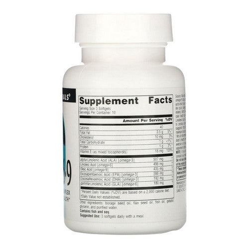 {"id":6869191753813,"title":"Source Naturals, Omega 3, 6, 9, 30 Softgels","handle":"omega-3-6-9-81245","description":"\u003cstrong\u003eProduct Description\u003c\/strong\u003e\u003cbr\u003e\u003cbr\u003e \u003cul\u003e\n\u003cli\u003eDietary Supplement\u003c\/li\u003e\n\u003cli\u003eEssential Fatty Acid Complex\u003c\/li\u003e\n\u003cli\u003eFor Heart and Brain Health*\u003c\/li\u003e\n\u003c\/ul\u003e\n \u003cbr\u003e\u003cbr\u003e\u003cstrong\u003eProduct Benefits\u003c\/strong\u003e\u003cbr\u003e\n\t\u003cbr\u003e \u003cbr\u003e\u003cbr\u003e\u003cstrong\u003eIngredients\u003c\/strong\u003e\u003cbr\u003e\u003cbr\u003e \t\u003cdiv class=\"prodSupCls\"\u003e\n\u003ctable width=\"100%\" cellspacing=\"0\" cellpadding=\"3\"\u003e\n \u003ctr\u003e\n \u003ctd colspan=\"3\"\u003e\u003cstrong\u003eSupplement Facts for \t\t\t\t \t\t\t \t\t\t\t\t\t\t for \t\t\t\t \t\t\t \t\t\t\t\t\t\t Softgels\u003cspan style=\"float: right\"\u003eServing Size: 3 Softgels \u003c\/span\u003e\u003c\/strong\u003e\u003c\/td\u003e\n \u003c\/tr\u003e\n \n\n\t\u003ctr\u003e\n\t \u003ctd width=\"49%\"\u003e\u003c\/td\u003e\n\t\t \u003ctd width=\"24%\"\u003e\u003cstrong\u003eAmount\u003c\/strong\u003e\u003c\/td\u003e\n\t\t \u003ctd width=\"27%\"\u003e\u003cstrong\u003e%DV\u003c\/strong\u003e\u003c\/td\u003e\n\t\t\u003c\/tr\u003e\n\t\t\n\t\u003ctr\u003e\n\t \u003ctd\u003eCalories\u003c\/td\u003e\n\t \u003ctd\u003e40 \u003c\/td\u003e\n\t \u003ctd\u003e\u003c\/td\u003e\n \u003c\/tr\u003e\n\t\u003ctr\u003e\n\t \u003ctd\u003eCalories from Fat\u003c\/td\u003e\n\t \u003ctd\u003e30\u003c\/td\u003e\n\t \u003ctd\u003e\u003c\/td\u003e\n \u003c\/tr\u003e\n\t\u003ctr\u003e\n\t \u003ctd\u003eTotal Fat\u003c\/td\u003e\n\t \u003ctd\u003e3.5 g\u003c\/td\u003e\n\t \u003ctd\u003e5%\u003c\/td\u003e\n \u003c\/tr\u003e\n\t\u003ctr\u003e\n\t \u003ctd\u003eSaturated Fat\u003c\/td\u003e\n\t \u003ctd\u003e0 g\u003c\/td\u003e\n\t \u003ctd\u003e\u0026lt;1%\u003c\/td\u003e\n \u003c\/tr\u003e\n\t\u003ctr\u003e\n\t \u003ctd\u003eTrans Fat\u003c\/td\u003e\n\t \u003ctd\u003e0 g\u003c\/td\u003e\n\t\t \u003ctd\u003e\u003c\/td\u003e\n\t\t\u003c\/tr\u003e\n\t\t\n\t\u003ctr\u003e\n\t \u003ctd\u003eCholesterol\u003c\/td\u003e\n\t \u003ctd\u003e10 mg\u003c\/td\u003e\n\t \u003ctd\u003e3%\u003c\/td\u003e\n \u003c\/tr\u003e\n\t\u003ctr\u003e\n\t \u003ctd\u003eTotal Carbohydrate\u003c\/td\u003e\n\t \u003ctd\u003e1 g\u003c\/td\u003e\n\t \u003ctd\u003e\u0026lt;1%\u003c\/td\u003e\n \u003c\/tr\u003e\n\t\u003ctr\u003e\n\t \u003ctd\u003eProtein\u003c\/td\u003e\n\t \u003ctd\u003e1 g\u003c\/td\u003e\n\t \u003ctd\u003e2%\u003c\/td\u003e\n \u003c\/tr\u003e\n\t\u003ctr\u003e\n\t \u003ctd\u003eVitamin E (as mixed tocopherols)\u003c\/td\u003e\n\t \u003ctd\u003e30 IU\u003c\/td\u003e\n\t \u003ctd\u003e100%\u003c\/td\u003e\n \u003c\/tr\u003e\n\t\u003ctr\u003e\n\t \u003ctd\u003e\n\u003cem\u003ealpha\u003c\/em\u003e-Linolenic Acid (ALA) [\u003cem\u003eomega\u003c\/em\u003e-3]\u003c\/td\u003e\n\t \u003ctd\u003e600 mg\u003c\/td\u003e\n\t \u003ctd\u003e\u003c\/td\u003e\n \u003c\/tr\u003e\n\t\u003ctr\u003e\n\t \u003ctd\u003eLinoleic Acid [\u003cem\u003eomega\u003c\/em\u003e-6]\u003c\/td\u003e\n\t \u003ctd\u003e522 mg\u003c\/td\u003e\n\t \u003ctd\u003e\u003c\/td\u003e\n \u003c\/tr\u003e\n\t\u003ctr\u003e\n\t \u003ctd\u003eOleic Acid [\u003cem\u003eomega\u003c\/em\u003e-9]\u003c\/td\u003e\n\t \u003ctd\u003e435 mg\u003c\/td\u003e\n\t \u003ctd\u003e\u003c\/td\u003e\n \u003c\/tr\u003e\n\t\u003ctr\u003e\n\t \u003ctd\u003eEicosapentaenoic Acid (EPA) [\u003cem\u003eomega\u003c\/em\u003e-3]\u003c\/td\u003e\n\t \u003ctd\u003e360 mg\u003c\/td\u003e\n\t \u003ctd\u003e\u003c\/td\u003e\n \u003c\/tr\u003e\n\t\u003ctr\u003e\n\t \u003ctd\u003eDocosahexaenoic Acid (DHA) [\u003cem\u003eomega\u003c\/em\u003e-3]\u003c\/td\u003e\n\t \u003ctd\u003e240 mg\u003c\/td\u003e\n\t \u003ctd\u003e\u003c\/td\u003e\n \u003c\/tr\u003e\n\t\u003ctr\u003e\n\t \u003ctd\u003e\n\u003cem\u003egamma\u003c\/em\u003e-Linolenic Acid (GLA) [\u003cem\u003eomega\u003c\/em\u003e-6]\u003c\/td\u003e\n\t\t \u003ctd\u003e228 mg\u003c\/td\u003e\n\t\t \u003ctd\u003e\u003c\/td\u003e\n\t\t\u003c\/tr\u003e\n\t\u003ctr\u003e\n\t \u003ctd colspan=\"3\"\u003e\n\u003cstrong\u003eOther Ingredients:\u003c\/strong\u003e\n\t Borage Seed Oil, Flax Seed Oil, Fish Oil, Gelatin, Glycerin, and Purified Water. \n\t \u003cdiv\u003e \u003c\/div\u003e\n\t \u003cbr\u003e\n\t \u003cdiv\u003e \u003c\/div\u003e\n\u003c\/td\u003e\n\t\t\u003c\/tr\u003e\n\u003c\/table\u003e\n\t\u003c\/div\u003e\n\n\t\u003cbr\u003e\u003cbr\u003e\u003cstrong\u003eSuggestions\u003c\/strong\u003e\u003cbr\u003e\u003cbr\u003e 3 softgels daily with a meal. \u003cbr\u003e\u003cbr\u003e\u003cstrong\u003eSpecial Note\u003c\/strong\u003e\u003cbr\u003e\u003cbr\u003e\n\tContains fish and soy.\n\t\u003cbr\u003e\u003cbr\u003e\u003cstrong\u003eWarnings\u003c\/strong\u003e\u003cbr\u003e\u003cbr\u003e If you are pregnant, may become pregnant, or breastfeeding, consult your health care professional before using this product.\nDo not use if either tamper-evident seal is broken or missing. Keep out of the reach of children. \u003cbr\u003e\u003cbr\u003e\u003cstrong\u003eCalifornia Proposition 65 WARNING\u003c\/strong\u003e\u003cbr\u003e\u003cbr\u003eSome products on this website contains progesterone, a chemical known to the State of California to cause cancer. Consult with your physician before using this product.\u003cbr\u003e\u003cbr\u003e\u003cstrong\u003eDisclaimer\u003c\/strong\u003e\u003cbr\u003e\u003cbr\u003eHerbsdaily.com offers\n\t\t\t\t\t\t\t\tnationally branded products that are produced according to manufacturing standards\n\t\t\t\t\t\t\t\tset by regulators at everyday low prices. Do not use unproven, unbranded products, which can pose serious risks to your health.","published_at":"2022-11-02T11:08:15-07:00","created_at":"2022-11-02T11:08:17-07:00","vendor":"Source Naturals","type":"EFA, Omega 3-6-9 Combinations","tags":["Brand_Source Naturals","CardiovascularHealth","DISAPPROVED","EFAOmega36