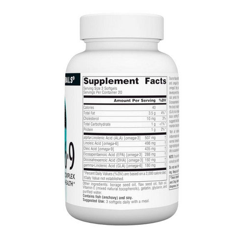 {"id":6869191819349,"title":"Source Naturals, Omega 3, 6, 9, 60 Softgels","handle":"omega-3-6-9-81246","description":"\u003cstrong\u003eProduct Description\u003c\/strong\u003e\u003cbr\u003e\u003cbr\u003e \u003cul\u003e\n\u003cli\u003eDietary Supplement\u003c\/li\u003e\n\u003cli\u003eEssential Fatty Acid Complex\u003c\/li\u003e\n\u003cli\u003eFor Heart and Brain Health*\u003c\/li\u003e\n\u003c\/ul\u003e\n \u003cbr\u003e\u003cbr\u003e\u003cstrong\u003eProduct Benefits\u003c\/strong\u003e\u003cbr\u003e\n\t\u003cbr\u003e \u003cbr\u003e\u003cbr\u003e\u003cstrong\u003eIngredients\u003c\/strong\u003e\u003cbr\u003e\u003cbr\u003e \t\u003cdiv class=\"prodSupCls\"\u003e\n\u003ctable width=\"100%\" cellspacing=\"0\" cellpadding=\"3\"\u003e\n \u003ctr\u003e\n \u003ctd colspan=\"3\"\u003e\u003cstrong\u003eSupplement Facts for \t\t\t\t \t\t\t \t\t\t\t\t\t\t for \t\t\t\t \t\t\t \t\t\t\t\t\t\t Softgels\u003cspan style=\"float: right\"\u003eServing Size: 3 Softgels \u003c\/span\u003e\u003c\/strong\u003e\u003c\/td\u003e\n \u003c\/tr\u003e\n \n\n\t\u003ctr\u003e\n\t \u003ctd width=\"49%\"\u003e\u003c\/td\u003e\n\t\t \u003ctd width=\"24%\"\u003e\u003cstrong\u003eAmount\u003c\/strong\u003e\u003c\/td\u003e\n\t\t \u003ctd width=\"27%\"\u003e\u003cstrong\u003e%DV\u003c\/strong\u003e\u003c\/td\u003e\n\t\t\u003c\/tr\u003e\n\t\t\n\t\u003ctr\u003e\n\t \u003ctd\u003eCalories\u003c\/td\u003e\n\t \u003ctd\u003e40 \u003c\/td\u003e\n\t \u003ctd\u003e\u003c\/td\u003e\n \u003c\/tr\u003e\n\t\u003ctr\u003e\n\t \u003ctd\u003eCalories from Fat\u003c\/td\u003e\n\t \u003ctd\u003e30\u003c\/td\u003e\n\t \u003ctd\u003e\u003c\/td\u003e\n \u003c\/tr\u003e\n\t\u003ctr\u003e\n\t \u003ctd\u003eTotal Fat\u003c\/td\u003e\n\t \u003ctd\u003e3.5 g\u003c\/td\u003e\n\t \u003ctd\u003e5%\u003c\/td\u003e\n \u003c\/tr\u003e\n\t\u003ctr\u003e\n\t \u003ctd\u003eSaturated Fat\u003c\/td\u003e\n\t \u003ctd\u003e0 g\u003c\/td\u003e\n\t \u003ctd\u003e\u0026lt;1%\u003c\/td\u003e\n \u003c\/tr\u003e\n\t\u003ctr\u003e\n\t \u003ctd\u003eTrans Fat\u003c\/td\u003e\n\t \u003ctd\u003e0 g\u003c\/td\u003e\n\t\t \u003ctd\u003e\u003c\/td\u003e\n\t\t\u003c\/tr\u003e\n\t\t\n\t\u003ctr\u003e\n\t \u003ctd\u003eCholesterol\u003c\/td\u003e\n\t \u003ctd\u003e10 mg\u003c\/td\u003e\n\t \u003ctd\u003e3%\u003c\/td\u003e\n \u003c\/tr\u003e\n\t\u003ctr\u003e\n\t \u003ctd\u003eTotal Carbohydrate\u003c\/td\u003e\n\t \u003ctd\u003e1 g\u003c\/td\u003e\n\t \u003ctd\u003e\u0026lt;1%\u003c\/td\u003e\n \u003c\/tr\u003e\n\t\u003ctr\u003e\n\t \u003ctd\u003eProtein\u003c\/td\u003e\n\t \u003ctd\u003e1 g\u003c\/td\u003e\n\t \u003ctd\u003e2%\u003c\/td\u003e\n \u003c\/tr\u003e\n\t\u003ctr\u003e\n\t \u003ctd\u003eVitamin E (as mixed tocopherols)\u003c\/td\u003e\n\t \u003ctd\u003e30 IU\u003c\/td\u003e\n\t \u003ctd\u003e100%\u003c\/td\u003e\n \u003c\/tr\u003e\n\t\u003ctr\u003e\n\t \u003ctd\u003e\n\u003cem\u003ealpha\u003c\/em\u003e-Linolenic Acid (ALA) [\u003cem\u003eomega\u003c\/em\u003e-3]\u003c\/td\u003e\n\t \u003ctd\u003e600 mg\u003c\/td\u003e\n\t \u003ctd\u003e\u003c\/td\u003e\n \u003c\/tr\u003e\n\t\u003ctr\u003e\n\t \u003ctd\u003eLinoleic Acid [\u003cem\u003eomega\u003c\/em\u003e-6]\u003c\/td\u003e\n\t \u003ctd\u003e522 mg\u003c\/td\u003e\n\t \u003ctd\u003e\u003c\/td\u003e\n \u003c\/tr\u003e\n\t\u003ctr\u003e\n\t \u003ctd\u003eOleic Acid [\u003cem\u003eomega\u003c\/em\u003e-9]\u003c\/td\u003e\n\t \u003ctd\u003e435 mg\u003c\/td\u003e\n\t \u003ctd\u003e\u003c\/td\u003e\n \u003c\/tr\u003e\n\t\u003ctr\u003e\n\t \u003ctd\u003eEicosapentaenoic Acid (EPA) [\u003cem\u003eomega\u003c\/em\u003e-3]\u003c\/td\u003e\n\t \u003ctd\u003e360 mg\u003c\/td\u003e\n\t \u003ctd\u003e\u003c\/td\u003e\n \u003c\/tr\u003e\n\t\u003ctr\u003e\n\t \u003ctd\u003eDocosahexaenoic Acid (DHA) [\u003cem\u003eomega\u003c\/em\u003e-3]\u003c\/td\u003e\n\t \u003ctd\u003e240 mg\u003c\/td\u003e\n\t \u003ctd\u003e\u003c\/td\u003e\n \u003c\/tr\u003e\n\t\u003ctr\u003e\n\t \u003ctd\u003e\n\u003cem\u003egamma\u003c\/em\u003e-Linolenic Acid (GLA) [\u003cem\u003eomega\u003c\/em\u003e-6]\u003c\/td\u003e\n\t\t \u003ctd\u003e228 mg\u003c\/td\u003e\n\t\t \u003ctd\u003e\u003c\/td\u003e\n\t\t\u003c\/tr\u003e\n\t\u003ctr\u003e\n\t \u003ctd colspan=\"3\"\u003e\n\u003cstrong\u003eOther Ingredients:\u003c\/strong\u003e\n\t Borage Seed Oil, Flax Seed Oil, Fish Oil, Gelatin, Glycerin, and Purified Water. \n\t \u003cdiv\u003e \u003c\/div\u003e\n\t \u003cbr\u003e\n\t \u003cdiv\u003e \u003c\/div\u003e\n\u003c\/td\u003e\n\t\t\u003c\/tr\u003e\n\u003c\/table\u003e\n\t\u003c\/div\u003e\n\n\t\u003cbr\u003e\u003cbr\u003e\u003cstrong\u003eSuggestions\u003c\/strong\u003e\u003cbr\u003e\u003cbr\u003e 3 softgels daily with a meal. \u003cbr\u003e\u003cbr\u003e\u003cstrong\u003eSpecial Note\u003c\/strong\u003e\u003cbr\u003e\u003cbr\u003e\n\tContains fish and soy.\n\t\u003cbr\u003e\u003cbr\u003e\u003cstrong\u003eWarnings\u003c\/strong\u003e\u003cbr\u003e\u003cbr\u003e If you are pregnant, may become pregnant, or breastfeeding, consult your health care professional before using this product.\nDo not use if either tamper-evident seal is broken or missing. Keep out of the reach of children. \u003cbr\u003e\u003cbr\u003e\u003cstrong\u003eCalifornia Proposition 65 WARNING\u003c\/strong\u003e\u003cbr\u003e\u003cbr\u003eSome products on this website contains progesterone, a chemical known to the State of California to cause cancer. Consult with your physician before using this product.\u003cbr\u003e\u003cbr\u003e\u003cstrong\u003eDisclaimer\u003c\/strong\u003e\u003cbr\u003e\u003cbr\u003eHerbsdaily.com offers\n\t\t\t\t\t\t\t\tnationally branded products that are produced according to manufacturing standards\n\t\t\t\t\t\t\t\tset by regulators at everyday low prices. Do not use unproven, unbranded products, which can pose serious risks to your health.","published_at":"2022-11-02T11:08:19-07:00","created_at":"2022-11-02T11:08:20-07:00","vendor":"Source Naturals","type":"EFA, Omega 3-6-9 Combinations","tags":["Brand_Source Naturals","CardiovascularHealth","DISAPPROVED","EFAOmega36