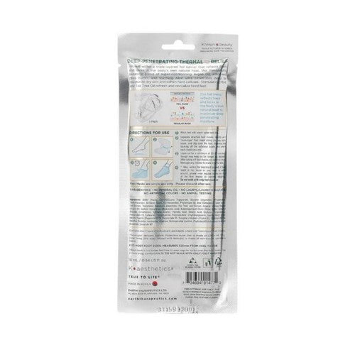 Thermal moisturizing foot mask is works bodys own heat to maximize the healing process. A botanical blend of super conditioning argan oil, emollient shea butter, and soothing aloe vera penetrates deeply to moisturize dry skin and soften hard calluses. Stimulating mint and antiseptic tea tree oil refresh and revitalize tired feet.