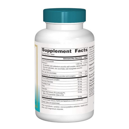 | Vitamin C (as ascorbic acid, potassium ascorbate, ascorbyl palmitate, calcium, magnesium, manganese and zinc ascorbates) | 1,000 mg | 1,667% |