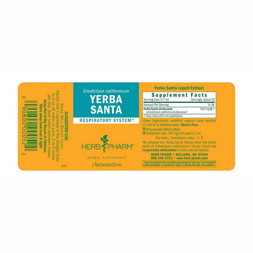 | Ingredients: Contains certified organic grain alcohol (66-76%), distilled water & Yerba Santa extracts. |