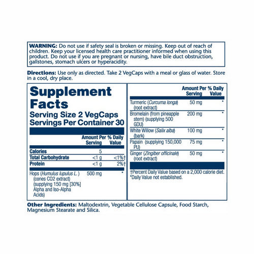 All-Natural with: Iso-Alpha Acids, White willow, Turmeric, Bromelain & More.
