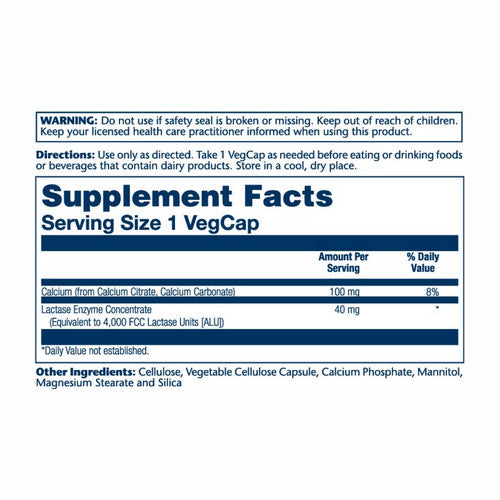 Use only as directed. Take one capsule as needed before eating or drinking foods or beverages that contain dairy products. Store in a cool, dry place.
