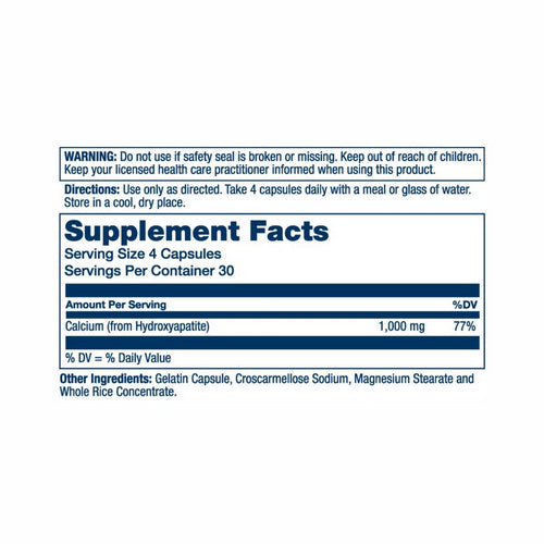 | Calcium (from Hydroxyapatite) | 1000 mg | 100% |