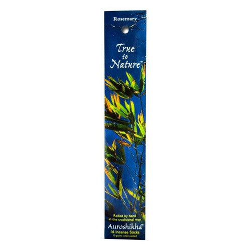 True to Nature Auroshikha Incense û RosemaryRosemary is a highly stimulating fragrance, evoking in the senses a touch of rich evergreen forests. Auroshikhas Rosemary incense is based on the essential oils of rosemary, spearmint and lavender. Lighting this incense brings about an immediate change of mood in the room. One effect of its aromatic strength is clarity, making it a good fragrance for study or meditation. During times of stress, this fragrance supports change, growth and inspiration.
