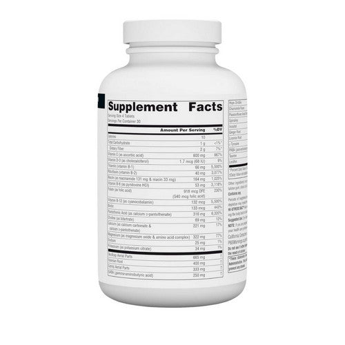 {"id":6869133557845,"title":"Source Naturals, Hi-Stress B\u0026c, w\/ herbs 120 Tabs","handle":"histress-b-c-6947","description":"\u003cstrong\u003eProduct Description\u003c\/strong\u003e\u003cbr\u003e\u003cbr\u003e \t\t\t\t\t\t\t \t\t\t\t\t\t\t \u003cul type=\"disc\"\u003e\n \u003cli\u003eDietary Supplement\u003c\/li\u003e\n \u003cli\u003eWith Herbs\u003c\/li\u003e\n\u003c\/ul\u003e\n \n\t\t\t\t\t\t \n\t\t\t\t\t\t \u003cbr\u003e\u003cbr\u003e\u003cstrong\u003eProduct Benefits\u003c\/strong\u003e\u003cbr\u003e\n\t\u003cbr\u003e \u003cbr\u003e\u003cbr\u003e\u003cstrong\u003eIngredients\u003c\/strong\u003e\u003cbr\u003e\u003cbr\u003e \u003cdiv class=\"prodSupCls\"\u003e\n\u003ctable width=\"100%\" cellspacing=\"0\" cellpadding=\"3\"\u003e\n\u003ctr\u003e\n \u003ctd colspan=\"3\"\u003e\n\u003cstrong style=\"font-size:16px;\"\u003eSupplement Facts For Tablet \u003c\/strong\u003e\u003cstrong\u003e\u003cspan style=\"float: right\"\u003eServing Size: 4 Tablets\u003c\/span\u003e\u003c\/strong\u003e\n\u003c\/td\u003e\n\u003c\/tr\u003e\n \n \u003ctr\u003e\n \u003ctd width=\"49%\"\u003e\u003c\/td\u003e\n \u003ctd width=\"24%\"\u003e\u003cstrong\u003eAmount\u003c\/strong\u003e\u003c\/td\u003e\n \u003ctd width=\"27%\"\u003e\u003cstrong\u003e%DV\u003c\/strong\u003e\u003c\/td\u003e\n \u003c\/tr\u003e\n \n \u003ctr\u003e\n \u003ctd\u003eCalories\u003c\/td\u003e\n \u003ctd\u003e10\u003c\/td\u003e\n \u003ctd\u003e \u003c\/td\u003e\n \u003c\/tr\u003e\n \u003ctr\u003e\n \u003ctd\u003eTotal Carbohydrate\u003c\/td\u003e\n \u003ctd\u003e1 g\u003c\/td\u003e\n \u003ctd\u003e\u0026lt;1%\u003c\/td\u003e\n \u003c\/tr\u003e\n \u003ctr\u003e\n \u003ctd\u003eDietary Fiber\u003c\/td\u003e\n \u003ctd\u003e1 g\u003c\/td\u003e\n \u003ctd\u003e4%\u003c\/td\u003e\n \u003c\/tr\u003e\n \u003ctr\u003e\n \u003ctd\u003eVitamin A\u003c\/td\u003e\n \u003ctd\u003e400 IU\u003c\/td\u003e\n \u003ctd\u003e8%\u003c\/td\u003e\n \u003c\/tr\u003e\n \u003ctr\u003e\n \u003ctd\u003eVitamin C (ascorbic acid)\u003c\/td\u003e\n \u003ctd\u003e666 mg\u003c\/td\u003e\n \u003ctd\u003e1,110%\u003c\/td\u003e\n \u003c\/tr\u003e\n \u003ctr\u003e\n \u003ctd\u003eVitamin D-3 (from cholecalciferol)\u003c\/td\u003e\n \u003ctd\u003e68 IU\u003c\/td\u003e\n \u003ctd\u003e20%\u003c\/td\u003e\n \u003c\/tr\u003e\n \u003ctr\u003e\n \u003ctd\u003eThiamin (vitamin B-1)\u003c\/td\u003e\n \u003ctd\u003e66 mg\u003c\/td\u003e\n \u003ctd\u003e4,440%\u003c\/td\u003e\n \u003c\/tr\u003e\n \u003ctr\u003e\n \u003ctd\u003eRiboflavin (vitamin B-2)\u003c\/td\u003e\n \u003ctd\u003e40 mg\u003c\/td\u003e\n \u003ctd\u003e2,353%\u003c\/td\u003e\n \u003c\/tr\u003e\n \u003ctr\u003e\n \u003ctd\u003eNiacin (as niacinamide 131 mg \u0026amp; niacin 33 mg)\u003c\/td\u003e\n \u003ctd\u003e164 mg\u003c\/td\u003e\n \u003ctd\u003e822%\u003c\/td\u003e\n \u003c\/tr\u003e\n \u003ctr\u003e\n \u003ctd\u003eVitamin B-6 (as pyridoxine HCl)\u003c\/td\u003e\n \u003ctd\u003e53 mg\u003c\/td\u003e\n \u003ctd\u003e2,650%\u003c\/td\u003e\n \u003c\/tr\u003e\n \u003ctr\u003e\n \u003ctd\u003eFolate (as folic acid)\u003c\/td\u003e\n \u003ctd\u003e540 mcg\u003c\/td\u003e\n \u003ctd\u003e135%\u003c\/td\u003e\n \u003c\/tr\u003e\n \u003ctr\u003e\n \u003ctd\u003eVitamin B-12 (as cyanocobalamin)\u003c\/td\u003e\n \u003ctd\u003e132 mcg\u003c\/td\u003e\n \u003ctd\u003e2,200%\u003c\/td\u003e\n \u003c\/tr\u003e\n \u003ctr\u003e\n \u003ctd\u003eBiotin\u003c\/td\u003e\n \u003ctd\u003e133 mcg\u003c\/td\u003e\n \u003ctd\u003e44%\u003c\/td\u003e\n \u003c\/tr\u003e\n \u003ctr\u003e\n \u003ctd\u003ePantothenic Acid (as calcium D-pantothenate)\u003c\/td\u003e\n \u003ctd\u003e332 mg\u003c\/td\u003e\n \u003ctd\u003e3,320%\u003c\/td\u003e\n \u003c\/tr\u003e\n \u003ctr\u003e\n \u003ctd\u003eCalcium (as calcium carbonate)\u003c\/td\u003e\n \u003ctd\u003e193 mg\u003c\/td\u003e\n \u003ctd\u003e19%\u003c\/td\u003e\n \u003c\/tr\u003e\n \u003ctr\u003e\n \u003ctd\u003eMagnesium (as magnesium oxide \u0026amp; chelate)\u003c\/td\u003e\n \u003ctd\u003e322 mg\u003c\/td\u003e\n \u003ctd\u003e80%\u003c\/td\u003e\n \u003c\/tr\u003e\n \u003ctr\u003e\n \u003ctd\u003eSodium\u003c\/td\u003e\n \u003ctd\u003e15 mg\u003c\/td\u003e\n \u003ctd\u003e\u0026lt;1%\u003c\/td\u003e\n \u003c\/tr\u003e\n \u003ctr\u003e\n \u003ctd\u003ePotassium (as potassium citrate)\u003c\/td\u003e\n \u003ctd\u003e34 mg\u003c\/td\u003e\n \u003ctd\u003e1%\u003c\/td\u003e\n \u003c\/tr\u003e\n \u003ctr\u003e\n \u003ctd\u003eValerian Root\u003c\/td\u003e\n \u003ctd\u003e400 mg\u003c\/td\u003e\n \u003ctd\u003e \u003c\/td\u003e\n \u003c\/tr\u003e\n \u003ctr\u003e\n \u003ctd\u003eCatnip Leaf\u003c\/td\u003e\n \u003ctd\u003e333 mg\u003c\/td\u003e\n \u003ctd\u003e \u003c\/td\u003e\n \u003c\/tr\u003e\n \u003ctr\u003e\n \u003ctd\u003eJujube Seed\u003c\/td\u003e\n \u003ctd\u003e266 mg\u003c\/td\u003e\n \u003ctd\u003e \u003c\/td\u003e\n \u003c\/tr\u003e\n \u003ctr\u003e\n \u003ctd\u003eGABA (\u003cem\u003egamma\u003c\/em\u003e-aminobutyric acid)\u003c\/td\u003e\n \u003ctd\u003e250 mg\u003c\/td\u003e\n \u003ctd\u003e \u003c\/td\u003e\n \u003c\/tr\u003e\n \u003ctr\u003e\n \u003ctd\u003eHops Strobile\u003c\/td\u003e\n \u003ctd\u003e233 mg\u003c\/td\u003e\n \u003ctd\u003e \u003c\/td\u003e\n \u003c\/tr\u003e\n \u003ctr\u003e\n \u003ctd\u003eSkullcap Aerial Parts\u003c\/td\u003e\n \u003ctd\u003e233 mg\u003c\/td\u003e\n \u003ctd\u003e \u003c\/td\u003e\n \u003c\/tr\u003e\n \u003ctr\u003e\n \u003ctd\u003eChamomile Flower\u003c\/td\u003e\n \u003ctd\u003e200 mg\u003c\/td\u003e\n \u003ctd\u003e \u003c\/td\u003e\n \u003c\/tr\u003e\n \u003ctr\u003e\n \u003ctd\u003ePassionflower Leaf \u0026amp; Flower\u003c\/td\u003e\n \u003ctd\u003e200 mg\u003c\/td\u003e\n \u003ctd\u003e \u003c\/td\u003e\n \u003c\/tr\u003e\n \u003ctr\u003e\n \u003ctd\u003eSpirulina\u003c\/td\u003e\n \u003ctd\u003e200 mg\u003c\/td\u003e\n \u003ctd\u003e \u003c\/td\u003e\n \u003c\/tr\u003e\n \n \u003ctr\u003e\n \u003ctd\u003eWood Betony Aerial Parts\u003c\/td\u003e\n \u003ctd\u003e166 mg\u003c\/td\u003e\n \u003ctd\u003e \u003c\/td\u003e\n \u