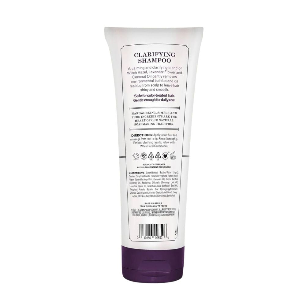 A calming and clarifying blend of Witch Hazel, Lavender Flower & Coconut Oil gently removes environmental buildup and oil residue from scalp to leave hair shiny and smooth.