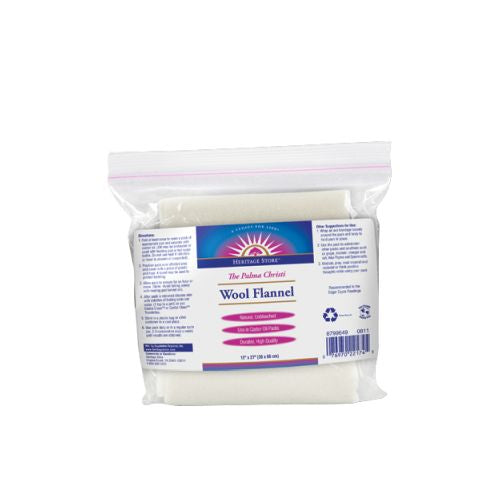 Palma Christi Wool Flannel. Natural, Unbleached 12" x 27" inch (30 x 68 cm) Piece. For use in castor oil packs.