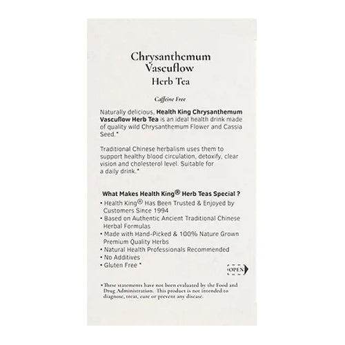 {"id":2588854583381,"title":"Health King, Chrysanthemum Vascuflow Herb Tea, 20bg","handle":"chrysanthemum-vascuflow-herb-tea-5597","description":"\u003cstrong\u003eProduct Description\u003c\/strong\u003e\u003cbr\u003e\u003cbr\u003e \u003cdiv class=\"prodDescCls\"\u003e\u003cul\u003e\n\u003cli\u003e100% Natural\u003c\/li\u003e\n\u003cli\u003eHealthy Cholesterol Level \u0026amp; Blood Pressure, Heart \u0026amp; Vision \u003c\/li\u003e\n\u003cli\u003eHerbal Supplement\u003c\/li\u003e\n\u003cli\u003eImproved Formula\u003c\/li\u003e\n\u003c\/ul\u003e\u003c\/div\u003e \u003cbr\u003e\u003cbr\u003e\u003cstrong\u003eProduct Benefits\u003c\/strong\u003e\u003cbr\u003e\n\t\u003cbr\u003e \u003cbr\u003e\u003cbr\u003e\u003cstrong\u003eIngredients\u003c\/strong\u003e\u003cbr\u003e\u003cbr\u003e \u003cdiv class=\"prodSupCls\"\u003e\u003ctable width=\"100%\" cellspacing=\"0\" cellpadding=\"3\"\u003e\n\u003ctr\u003e\u003ctd colspan=\"3\"\u003e\n\u003cstrong style=\"font-size:16px;\"\u003eSupplement Facts\u003c\/strong\u003e\u003cspan class=\"subSpan\"\u003e\u003cstrong\u003eServing Size:\u003c\/strong\u003e 1-2 Tea Bags \u003c\/span\u003e\u003cspan class=\"subSpan\"\u003e\u003cstrong\u003eServings Per Container:\u003c\/strong\u003e 10-20 \u003c\/span\u003e\n\u003c\/td\u003e\u003c\/tr\u003e\n\u003ctr\u003e\n\u003ctd width=\"70%\"\u003e \u003c\/td\u003e\n\u003ctd width=\"15%\"\u003e\u003cstrong\u003eAmount Per Tea Bag\u003c\/strong\u003e\u003c\/td\u003e\n\u003ctd width=\"15%\"\u003e\u003cstrong\u003e% Daily Value\u003c\/strong\u003e\u003c\/td\u003e\n\u003c\/tr\u003e\n\u003ctr\u003e\n\u003ctd\u003e\n\u003cstrong\u003eProprietary Blend\u003c\/strong\u003e\u003cbr\u003e Chrysanthemum (flower), Jujube (fruit), sophora (flower), Perilla (leaf), Jasmine (flower)\u003c\/td\u003e\n\u003ctd\u003e1.5 g\u003c\/td\u003e\n\u003ctd\u003e*\u003c\/td\u003e\n\u003c\/tr\u003e\n\u003ctr\u003e\u003ctd colspan=\"3\"\u003e* Daily Value Not Established\u003c\/td\u003e\u003c\/tr\u003e\n\u003ctr\u003e\u003ctd colspan=\"3\"\u003e\n\u003cb\u003eOther Ingredients\u003c\/b\u003e\u003cdiv class=\"prodIngCls\"\u003e\u003cp\u003eNone\u003c\/p\u003e\u003c\/div\u003e\n\u003c\/td\u003e\u003c\/tr\u003e\n\u003c\/table\u003e\u003c\/div\u003e\n\t\u003cbr\u003e\u003cbr\u003e\u003cstrong\u003eSuggestions\u003c\/strong\u003e\u003cbr\u003e\u003cbr\u003e \u003cdiv class=\"prodDescCls\"\u003e\n\u003cp\u003eSteep 1-2 tea bags in hot water for 3-5 minutes for hot tea. Steep in hot water and refrigerate for ice-tea. Use 2-4 bags a day.\u003c\/p\u003e \u003c\/div\u003e \u003cbr\u003e\u003cbr\u003e\u003cstrong\u003eSpecial Note\u003c\/strong\u003e\u003cbr\u003e\u003cbr\u003e\n\t\n\t\u003cbr\u003e\u003cbr\u003e\u003cstrong\u003eWarnings\u003c\/strong\u003e\u003cbr\u003e\u003cbr\u003e \u003cdiv class=\"prodDescCls\"\u003e\u003cp\u003eConsult your health professional before use if you are pregnant, or nursing. Keep out of reach of children.\u003c\/p\u003e\u003c\/div\u003e\u003cdiv class=\"prodEmtCls\"\u003e\u003c\/div\u003e \u003cbr\u003e\u003cbr\u003e","published_at":"2019-05-30T10:20:05-07:00","created_at":"2019-05-30T10:20:06-07:00","vendor":"Health King","type":"Heart \/ Cardiovascular Support","tags":["Below-$ 5","Benefits Blood Pressure Support","Benefits Cardiovascular Support","Benefits Cholesterol Support","Benefits Heart Support","Benefits Vision Support","Brand_Health King","ChristmasSale_Grocery","mapped_vendor_product","Offer_20%_30%_Off","Vitamins\u0026Supplements","VNS_H"],"price":799,"price_min":799,"price_max":799,"available":true,"price_varies":false,"compare_at_price":799,"compare_at_price_min":799,"compare_at_price_max":799,"compare_at_price_varies":false,"variants":[{"id":32896136446037,"title":"Default Title","option1":"Default Title","option2":null,"option3":null,"sku":"5597","requires_shipping":true,"taxable":true,"featured_image":null,"available":true,"name":"Health King, Chrysanthemum Vascuflow Herb Tea, 20bg","public_title":null,"options":["Default Title"],"price":799,"weight":132,"compare_at_price":799,"inventory_management":"shopify","barcode":"646322000115","requires_selling_plan":false,"selling_plan_allocations":[],"quantity_rule":{"min":1,"max":null,"increment":1}}],"images":["\/\/www.herbsdaily.com\/cdn\/shop\/files\/51178_9c0d5d20-ccaf-4964-93af-955b9e4c0087.jpg?v=1751295420","\/\/www.herbsdaily.com\/cdn\/shop\/files\/51178_1.jpg?v=1751295420","\/\/www.herbsdaily.com\/cdn\/shop\/files\/51178_2.jpg?v=1751295420","\/\/www.herbsdaily.com\/cdn\/shop\/files\/51178_3.jpg?v=1751295420","\/\/www.herbsdaily.com\/cdn\/shop\/files\/51178_4.jpg?v=1751295420","\/\/www.herbsdaily.com\/cdn\/shop\/files\/51178_5.jpg?v=1751295420"],"featured_image":"\/\/www.herbsdaily.com\/cdn\/shop\/files\/51178_9c0d5d20-ccaf-4964-93af-955b9e4c0087.jpg?v=1751295420","options":["Title"],"media":[{"alt":null,"id":25253991841877,"position":1,"preview_image":{"aspect_ratio":1.0,"height":500,"width":500,"src":"\/\/www.herbsdaily.com\/cdn\/shop\/files\/51178_9c0d5d20-ccaf-4964-93af-955b9e4c0087.jpg?v=1751295420"},"aspect_ratio":1.0,"height":500,"media_type":"image","src":"\/\/www.herbsdaily.com\/cdn\/shop\/files\/51178_9c0d5d20-ccaf-4964-93af-955b9e4c0087.jpg?v=1751295420","width":500},{"alt":null,"id":25253991874645,"position":2,"preview_image":{"aspect_ratio":1.0,"height":500,"width":500,"src":"\/\/www.herbsdaily.com\/cdn\/shop\/files\/51178_1.jpg?v=1751295420"},"aspect_ratio":1.0,"height":500,"media_type":"image","src":"\/\/www.herbsdaily.com\/cdn\/shop\/files\/51178_1.jpg?v=1751295420","width":500},{"alt":null,"id":25253991907413,"position":3,"preview_image":{"aspect_ratio":1.0,"height":500,"width":500,"src":"\/\/www.herbsdaily.com\/cdn\/shop\/files\/51178_2.jpg?v=1751295420"},"aspect_ratio":1.0,"height":500,"media_type":"image","src":"\/\/www.herbsdaily.com\/cdn\/shop\/files\/51178_2.jpg?v=1751295420","width":500},{"alt":null,"id":25253991940181,"position":4,"preview_image":{"aspect_ratio":1.0,"height":500,"width":500,"src":"\/\/www.herbsdaily.com\/cdn\/shop\/