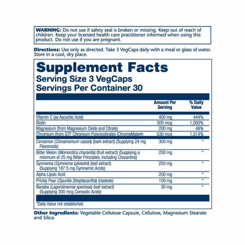 | Bitter Melon (Momordica charantia) (fruit extract) (Supplying a minimum of 25 mg Bitter Principles, including Charantins) | 250 mg | * |