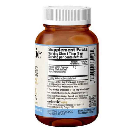 Ingredients:  Raw, organic, freeze-dried celery stalk and leaf.
