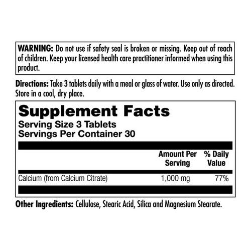 Calcium Citrate 1000 provides a high potency of calcium per serving. Calcium is intended to provide nutritive support for healthy bones and teeth.