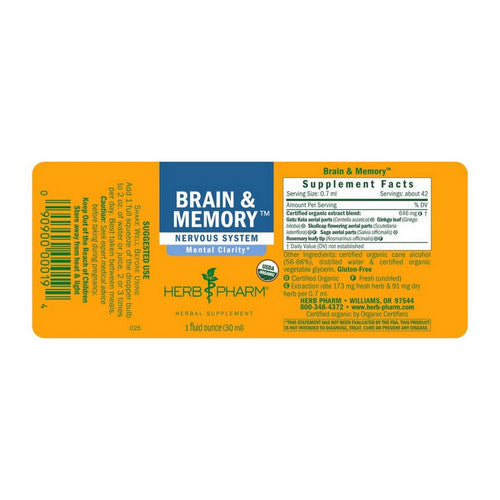 Seek expert medical advice before taking Herb Pharm Brain and Memory during pregnancy. Keep out of reach of children. Store this bottle away from heat and light.