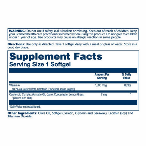 Vitamin A�100% as Natural Beta Carotene from [Dunaliela salina (algae)] �25,000 IU 500%