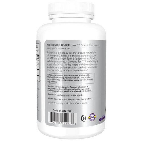 Ribose is a simple sugar that occurs naturally in all living cells. Ribose is the structural backbone of ATP, the primary form of energy used for all cellular processes.* Demand for ATP availability is especially critical in the heart and skeletal muscle and ribose supplementation can help to maintain optimal energy levels in these tissues.*