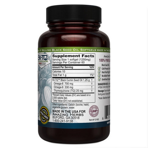 Amazing Herbs Premium Black Seed oil is a valuable source of EFA's 3/6/9's and also contains two very powerful phytochemicals Nigellone and Thymoquinone along with other nutrients that work synergistically to support the body's various functions.