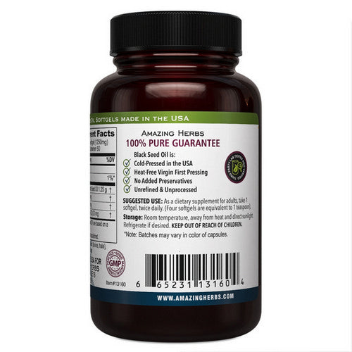 Black Seed oil is a very rich source of unsaturated essential fatty acids (EFA's) and offers many nutritional benefits for good health. The soft gel capsules provide an easy and practical way to take the right amount of Black Seed oil without tasting the distinctive taste of the oil. You have got to try the Black Seed Black Cumin Oil by Amazing Herbs to enjoy the benefits of health. This product is a valuable source of EFA's 3/6/9's and also contains two very powerful phytochemicals. Benefits