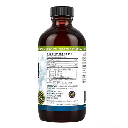 Black cumin seed oil, commonly known as black seed oil, is a pure and natural product. Black seeds are cultivated the natural way, without any chemicals or pesticides. This product is packed with thymoquione to optimize health and wellness. Amazing herbs premium black Seed Oil is cold pressed in the using high-grade turkish nigella sativa seeds for maximum efficiency. with our cold-pressed extraction,oil is pure, clean, and powerful.