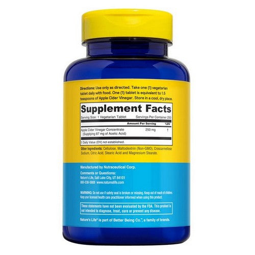 Buy Apple Cider Vinegar 250 tabs by Nature's Life Online at Low Prices - Herbsdaily.com