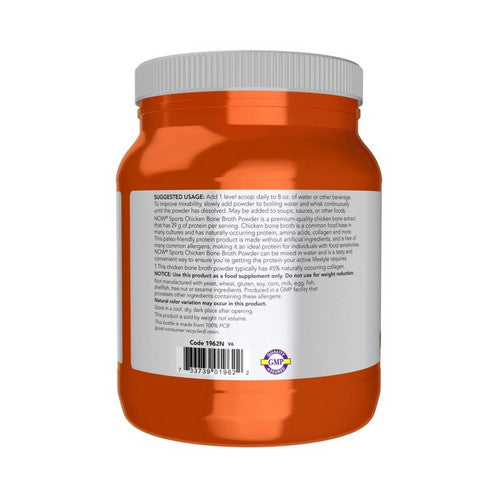 Now Sports Chicken Bone Broth Powder is a premium quality chicken bone extract that's an excellent source of natural protein. Chicken bone broth is a common food base in many cultures and a natural source of protein, amino acids, collagen and more. Now Sports Chicken Bone Broth Powder mixes easily in water and is a tasty and convenient way to ensure you're getting the protein your active lifestyle requires.