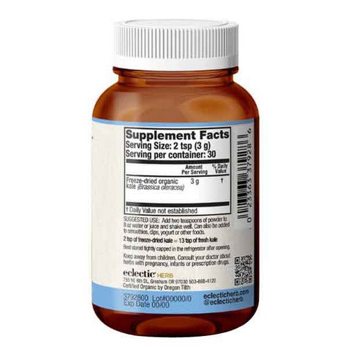 | Ingredients: Raw, organic, freeze-dried kale. |