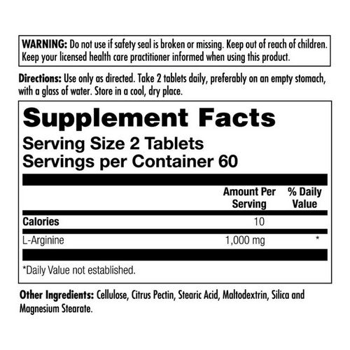 L Arginine SR contains Pharmaceutical grade. Each tablet provides 1,000 mg of is absorbed and metabolized rapidly by the body. Sustained Release is intended to help support optimal L Arginine levels throughout the day, in a convenient, once daily tablet.