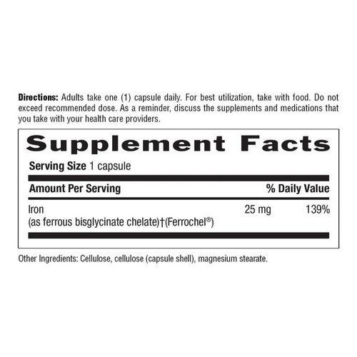 | Iron (Ferrochel ferrous bis-glycinate chelate)† | 25 mg | 139% |