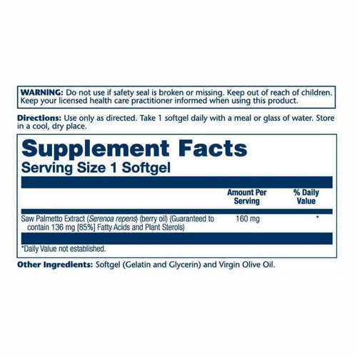 | Saw Palmetto Extract�(Serenoa repens)� (berry oil) (Guaranteed to contain 136 mg [85%] Fatty Acids and Plant Sterols) | 160�mg | * |