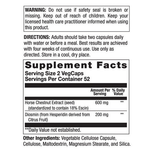 Dietary Supplement Hores Chestnut Formula Nutritive Support for Healthy Leg Circulation Improved Formula Leg Vein Health.