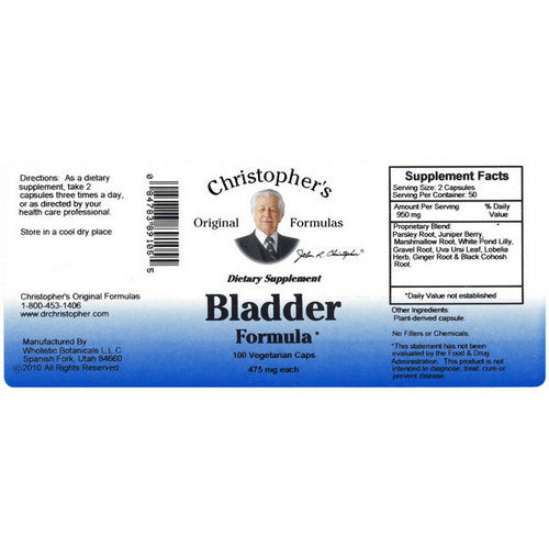 {"id":2587622015061,"title":"Christopher's Original Formulas, Bladder Formula, 475 mg, 100 vcaps","handle":"bladder-formula-45663","description":"\u003cstrong\u003eProduct Description\u003c\/strong\u003e\u003cbr\u003e\u003cbr\u003e \u003cdiv class=\"prodDescCls\"\u003e\u003cul\u003e\u003cli\u003eConsidered as Dietary Supplement\u003c\/li\u003e\u003c\/ul\u003e\u003c\/div\u003e \u003cbr\u003e\u003cbr\u003e\u003cstrong\u003eProduct Benefits\u003c\/strong\u003e\u003cbr\u003e\n\t\u003cbr\u003e \u003cbr\u003e\u003cbr\u003e\u003cstrong\u003eIngredients\u003c\/strong\u003e\u003cbr\u003e\u003cbr\u003e \u003cdiv class=\"prodSupCls\"\u003e\u003ctable width=\"100%\" cellspacing=\"0\" cellpadding=\"3\"\u003e\n\u003ctr\u003e\u003ctd colspan=\"3\"\u003e\n\u003cstrong style=\"font-size:16px;\"\u003eSupplement Facts\u003c\/strong\u003e\u003cspan class=\"subSpan\"\u003e\u003cstrong\u003eServing Size: \u003c\/strong\u003e2 Capsules\u003c\/span\u003e\u003cspan class=\"subSpan\"\u003e\u003cstrong\u003eServings per Container: \u003c\/strong\u003e50\u003c\/span\u003e\n\u003c\/td\u003e\u003c\/tr\u003e\n\u003ctr\u003e\n\u003ctd width=\"70%\"\u003e \u003c\/td\u003e\n\u003ctd width=\"15%\"\u003e\u003cstrong\u003eAmount Per Serving\u003c\/strong\u003e\u003c\/td\u003e\n\u003ctd width=\"15%\"\u003e\u003cstrong\u003e% Daily Value\u003c\/strong\u003e\u003c\/td\u003e\n\u003c\/tr\u003e\n\u003ctr\u003e\n\u003ctd\u003eProprietary Blend:\u003cbr\u003e Parsley Root, Organic Juniper Berry, Wildcrafted Marshmallow Root, Wildcrafted White Pond Lilly, Wildcrafted Gravel Root, Uva Ursi Leaf, Wildcrafted Lobelia Herb, Organic Ginger Root \u0026amp; Wildcrafted Black Cohosh Root.\u003c\/td\u003e\n\u003ctd\u003e950 mg\u003c\/td\u003e\n\u003ctd\u003e*\u003c\/td\u003e\n\u003c\/tr\u003e\n\u003ctr\u003e\u003ctd colspan=\"3\"\u003e*Daily Value not established.\u003c\/td\u003e\u003c\/tr\u003e\n\u003ctr\u003e\u003ctd colspan=\"3\"\u003e\n\u003cb\u003eOther Ingredients\u003c\/b\u003e\u003cdiv class=\"prodIngCls\"\u003e\n\u003cp\u003ePlant-derived capsule.\u003c\/p\u003e\n\u003cp\u003eNo fillers or chemicals.\u003c\/p\u003e\n\u003c\/div\u003e\n\u003c\/td\u003e\u003c\/tr\u003e\n\u003c\/table\u003e\u003c\/div\u003e\n\t\u003cbr\u003e\u003cbr\u003e\u003cstrong\u003eSuggestions\u003c\/strong\u003e\u003cbr\u003e\u003cbr\u003e \u003cdiv class=\"prodDescCls\"\u003e\n\u003cp\u003eAs a dietary supplement, take 2 capsules three times a day, or as directed by your health care professional.\u003c\/p\u003e \u003c\/div\u003e \u003cbr\u003e\u003cbr\u003e\u003cstrong\u003eSpecial Note\u003c\/strong\u003e\u003cbr\u003e\u003cbr\u003e\n\tNo added Fillers or Chemicals.\n\t\u003cbr\u003e\u003cbr\u003e\u003cstrong\u003eWarnings\u003c\/strong\u003e\u003cbr\u003e\u003cbr\u003e \u003cdiv class=\"prodDescCls\"\u003e\u003cp\u003eStore in a cool dry place.\u003c\/p\u003e\u003c\/div\u003e \u003cdiv class=\"prodEmtCls\"\u003e\u003c\/div\u003e \u003cbr\u003e\u003cbr\u003e","published_at":"2019-05-30T04:07:44-07:00","created_at":"2019-05-30T04:07:44-07:00","vendor":"Christopher's Original Formulas","type":"Eye Support","tags":["Ailment Cataracts","Ailment Dry Eye Syndrome","Ailment Macular Degeneration","Ailment Tearing","Ailment Uveitis","Benefits Anti-Inflammatory Support","Benefits Eye Health Support","Benefits Increase Density In Retina","Benefits Protect from UV Light","Benefits Protects Against Cell Damage","Benefits Relief From Irritability","Benefits Vision Support","Body Part\/Organ Eye","Brand_Dr. Christophers Formulas","mapped_vendor_product","Offer_30%_40%_OffÊ","Price_$ 10 - $ 20","Symptoms Burning Sensation","Symptoms Dryness","Symptoms Eye Fatigue","Symptoms Eye Inflammation","Symptoms Irritation","Symptoms Itchy Eyes","Symptoms Red Eyes","Vitamins\u0026Supplements","VNS_E","VNS_EyeSupport"],"price":2875,"price_min":2875,"price_max":2875,"available":true,"price_varies":false,"compare_at_price":2875,"compare_at_price_min":2875,"compare_at_price_max":2875,"compare_at_price_varies":false,"variants":[{"id":32896649396309,"title":"Default Title","option1":"Default Title","option2":null,"option3":null,"sku":"45663","requires_shipping":true,"taxable":true,"featured_image":null,"available":true,"name":"Christopher's Original Formulas, Bladder Formula, 475 mg, 100 vcaps","public_title":null,"options":["Default Title"],"price":2875,"weight":113,"compare_at_price":2875,"inventory_management":"shopify","barcode":"084783891055","requires_selling_plan":false,"selling_plan_allocations":[],"quantity_rule":{"min":1,"max":null,"increment":1}}],"images":["\/\/www.herbsdaily.com\/cdn\/shop\/files\/109464_760e0c8d-a81a-4ad3-81bb-00628ac51ae9.jpg?v=1751330382","\/\/www.herbsdaily.com\/cdn\/shop\/files\/109464_1.jpg?v=1751330382"],"featured_image":"\/\/www.herbsdaily.com\/cdn\/shop\/files\/109464_760e0c8d-a81a-4ad3-81bb-00628ac51ae9.jpg?v=1751330382","options":["Title"],"media":[{"alt":null,"id":25256655388757,"position":1,"preview_image":{"aspect_ratio":1.0,"height":500,"width":500,"src":"\/\/www.herbsdaily.com\/cdn\/shop\/files\/109464_760e0c8d-a81a-4ad3-81bb-00628ac51ae9.jpg?v=1751330382"},"aspect_ratio":1.0,"height":500,"media_type":"image","src":"\/\/www.herbsdaily.com\/cdn\/shop\/files\/109464_760e0c8d-a81a-4ad3-81bb-00628ac51ae9.jpg?v=1751330382","width":500},{"alt":null,"id":25256655421525,"position":2,"preview_image":{"aspect_ratio":1.0,"height":500,"width":500,"src":"\/\/www.herbsdaily.com\/cdn\/shop\/files\/109464_1.jpg?v=1751330382"},"aspect_ratio":1.0,"height":500,"media_type":"image","src":"\/\/www.herbsdaily.com\/cdn\/shop\/files\/109464_1.jpg?v=1751330382","width":500}],"requires_selling_plan":false,"selling_plan_groups":[],"content":"\u003cstrong\u003eProduct Description\u003c\/strong\u003e\u003cbr\u003e\u003cbr\u003e \u003cdiv class=\"prodDescCls\"\u003e\u003cul\u003e\u003cli\u003eConsidered as Dietary Supplement\u003c\/li\u003e\u003c\/ul\u003e\u003c\/div\u003e \u003cbr\u003e\u003cbr\u003e\u003cstrong\u003eProduct Benefits\u003c\/strong\u003e\u003cbr\u003e\n\t\u0