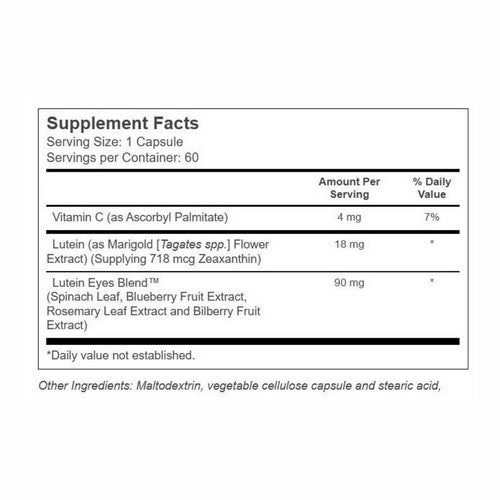 | Lutein Eyes™ Blend Spinach Leaf, Blueberry Fruit Extract, Rosemary Leaf Extract and Bilberry Fruit Extract.) | 90 mg | * |
