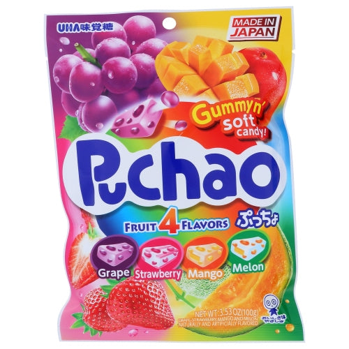 Candy Puchao Mix Fruit Is Made From Grape, Sugar Corn Syrup And Artifical Flavors To Add Sour Taste To The Candy