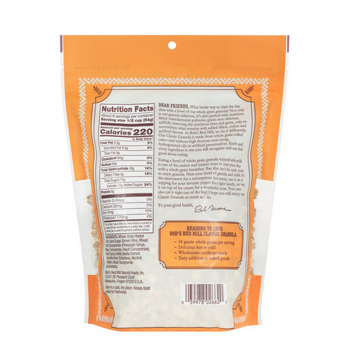Classic granola is lightly sweetened, pleasantly crunchy and packed with whole grain goodness. Eat it cold with yogurt, heat it up with milk or snack on it right out the bag.
