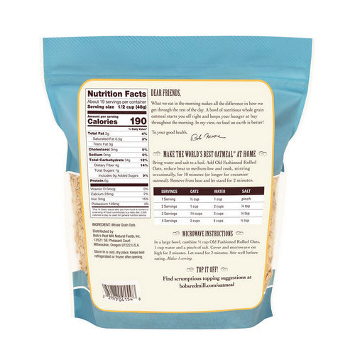 Old fashioned rolled oats make a delicious, chewy, whole some hot cereal that will give lasting energy throughout the morning. Also a great choice for classic oatmeal raisin cookies, homemade granola, and oatmeal bread.
