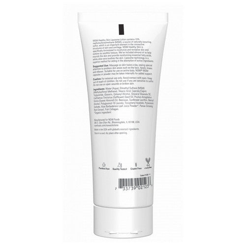 Directions: Massage MSM Healthy Skin Liposome Lotion on skin twice a day, paying special attention to problem skin areas such as the face, hands, knees and elbows. Suitable for use on entire body. NOW? MSM capsules or powder may be taken internally for added support. Store in a cool, dry place after opening.