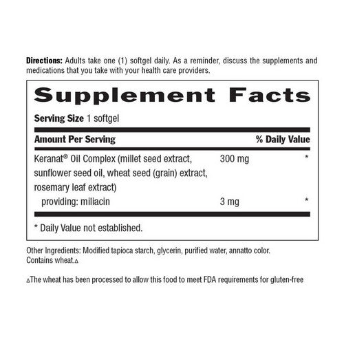 | Keranat ® Oil Complex (millet seed extract, sunflower seed oil, wheat seed (grain) extract, rosemary leaf extract) | 300 mg | * |