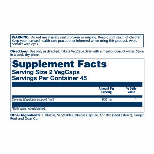 | Cayenne?(Capsicum annuum)? (fruit) | 600 mg | * |