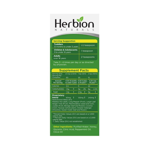Sore throat and congestion in the respiratory and bronchial tracts can be extremely painful and uncomfortable. We need a strong immune system to fight any viral and bacterial attack that comes our way. Herbion Cough syrup optimizes immune system to maintain healthy bronchial passageways and lung functions. Herbion Cough Syrup with its honey flavor tastes great and naturally promotes healthy respiratory function.