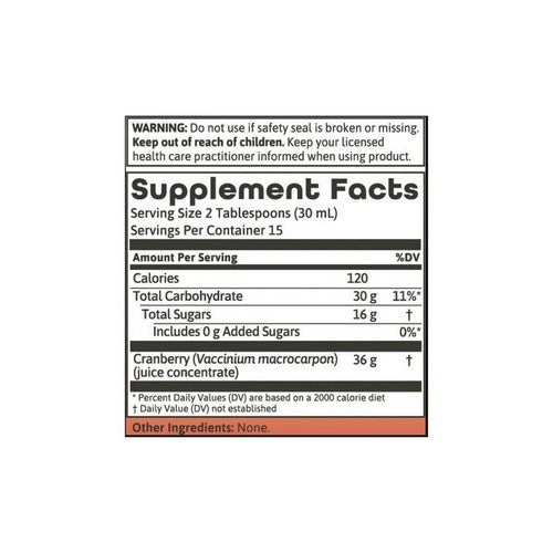 Serving size 2 tbsp. (30 mL) of cranberry juice concentrate. May be mixed with water, seltzer, juice or a beverage of your choice. Shake before use. Refrigerate after opening.