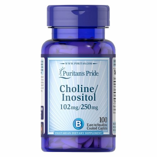 Choline / Inositol 102 mg /250 mg contains a 100 day supply of easy to swallow coated capsules. Sugar & Preservative Free. Each tablet contains the B-Complex factors choline bitartrate (102 mg) and inositol (250 mg). Choline is an important component of cell membranes, including brain cells.