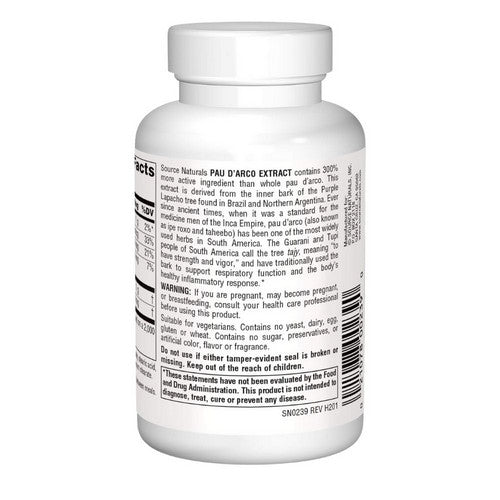 {"id":6869142241365,"title":"Source Naturals, Pau D'Arco Extract, 500 mg, 100 Tabs","handle":"pau-d-39arco-7282","description":"\u003cstrong\u003eProduct Description\u003c\/strong\u003e\u003cbr\u003e\u003cbr\u003e \u003cdiv class=\"prodDescCls\"\u003e\u003cul\u003e\u003cli\u003eConsidered as Dietary Supplement\u003c\/li\u003e\u003c\/ul\u003e\u003c\/div\u003e \u003cbr\u003e\u003cbr\u003e\u003cstrong\u003eProduct Benefits\u003c\/strong\u003e\u003cbr\u003e\n\t\u003cbr\u003e \u003cbr\u003e\u003cbr\u003e\u003cstrong\u003eIngredients\u003c\/strong\u003e\u003cbr\u003e\u003cbr\u003e \u003cdiv class=\"prodSupCls\"\u003e\u003ctable width=\"100%\" cellspacing=\"0\" cellpadding=\"3\"\u003e\n\u003ctr\u003e\u003ctd colspan=\"3\"\u003e\n\u003cstrong style=\"font-size:16px;\"\u003eSupplement Facts\u003c\/strong\u003e\u003cspan class=\"subSpan\"\u003e\u003cstrong\u003eServing Size:\u003c\/strong\u003e 2 Tablets\u003c\/span\u003e\u003cspan class=\"subSpan\"\u003e\u003cstrong\u003eServings Per Container:\u003c\/strong\u003e 50\u003c\/span\u003e\n\u003c\/td\u003e\u003c\/tr\u003e\n\u003ctr\u003e\n\u003ctd width=\"70%\"\u003e \u003c\/td\u003e\n\u003ctd width=\"15%\"\u003e\u003cstrong\u003eAmount Per Serving\u003c\/strong\u003e\u003c\/td\u003e\n\u003ctd width=\"15%\"\u003e\u003cstrong\u003e%DV\u003c\/strong\u003e\u003c\/td\u003e\n\u003c\/tr\u003e\n\u003ctr\u003e\n\u003ctd\u003eDietary Fiber\u003c\/td\u003e\n\u003ctd\u003e1 g\u003c\/td\u003e\n\u003ctd\u003e4%*\u003c\/td\u003e\n\u003c\/tr\u003e\n\u003ctr\u003e\n\u003ctd\u003eVitamin A (beta-carotene)\u003c\/td\u003e\n\u003ctd\u003e1,000 IU\u003c\/td\u003e\n\u003ctd\u003e20%\u003c\/td\u003e\n\u003c\/tr\u003e\n\u003ctr\u003e\n\u003ctd\u003eVitamin C (as ascorbic acid)\u003c\/td\u003e\n\u003ctd\u003e20 mg\u003c\/td\u003e\n\u003ctd\u003e34%\u003c\/td\u003e\n\u003c\/tr\u003e\n\u003ctr\u003e\n\u003ctd\u003eCalcium\u003c\/td\u003e\n\u003ctd\u003e96 mg\u003c\/td\u003e\n\u003ctd\u003e10%\u003c\/td\u003e\n\u003c\/tr\u003e\n\u003ctr\u003e\n\u003ctd\u003ePau D'Arco Bark Extract (3:1)\u003c\/td\u003e\n\u003ctd\u003e1 g\u003c\/td\u003e\n\u003ctd\u003e†\u003c\/td\u003e\n\u003c\/tr\u003e\n\u003ctr\u003e\n\u003ctd\u003ePau D'Arco (Inner) Bark\u003c\/td\u003e\n\u003ctd\u003e50 mg\u003c\/td\u003e\n\u003ctd\u003e†\u003c\/td\u003e\n\u003c\/tr\u003e\n\u003ctr\u003e\u003ctd colspan=\"3\"\u003e*Percent Daily Values (%DV) are based on a 2,000 calorie diet. \u003cbr\u003e†Daily Value not established.\u003c\/td\u003e\u003c\/tr\u003e\n\u003ctr\u003e\u003ctd colspan=\"3\"\u003e\n\u003cb\u003eOther Ingredients\u003c\/b\u003e\u003cdiv class=\"prodIngCls\"\u003e\n\u003cp\u003eDibasic calcium phosphate, stearic acid, colloidal silicon dioxide, modified cellulose gum and magnesium stearate.\u003c\/p\u003e\n\u003cp\u003eContains soy.\u003c\/p\u003e\n\u003cp\u003eSuitable for vegetarians. Contains no yeast, dairy, egg, gluten or wheat. Contains no sugar, starch, salt, preservatives, or artificial color, flavor or fragrance.\u003c\/p\u003e\n\u003c\/div\u003e\n\u003c\/td\u003e\u003c\/tr\u003e\n\u003c\/table\u003e\u003c\/div\u003e\n\t\u003cbr\u003e\u003cbr\u003e\u003cstrong\u003eSuggestions\u003c\/strong\u003e\u003cbr\u003e\u003cbr\u003e \u003cdiv class=\"prodDescCls\"\u003e\n\u003cp\u003e1 to 2 tablets twice daily between meals.\u003c\/p\u003e \u003c\/div\u003e \u003cbr\u003e\u003cbr\u003e\u003cstrong\u003eSpecial Note\u003c\/strong\u003e\u003cbr\u003e\u003cbr\u003e\n\tNA\n\t\u003cbr\u003e\u003cbr\u003e\u003cstrong\u003eWarnings\u003c\/strong\u003e\u003cbr\u003e\u003cbr\u003e \u003cdiv class=\"prodDescCls\"\u003e\n\u003cp\u003eIf you are pregnant, may become pregnant, or breastfeeding, consult your health care professional before using this product.\u003c\/p\u003e\n\u003cp\u003eDo not use if either tamper-evident seal is broken or missing. Keep out of the reach of children.\u003c\/p\u003e\n\u003c\/div\u003e\u003cdiv class=\"prodEmtCls\"\u003e\u003c\/div\u003e \u003cbr\u003e\u003cbr\u003e\u003cstrong\u003eCalifornia Proposition 65 WARNING\u003c\/strong\u003e\u003cbr\u003e\u003cbr\u003eSome products on this website contains progesterone, a chemical known to the State of California to cause cancer. Consult with your physician before using this product.\u003cbr\u003e\u003cbr\u003e\u003cstrong\u003eDisclaimer\u003c\/strong\u003e\u003cbr\u003e\u003cbr\u003eHerbsdaily.com offers\n\t\t\t\t\t\t\t\tnationally branded products that are produced according to manufacturing standards\n\t\t\t\t\t\t\t\tset by regulators at everyday low prices. Do not use unproven, unbranded products, which can pose serious risks to your health.","published_at":"2022-11-02T10:00:32-07:00","created_at":"2022-11-02T10:00:33-07:00","vendor":"Source Naturals","type":"Candida Remedies","tags":["Brand_Source Naturals","CandidaRemedies","Digestion","mapped_vendor_product","restricted_on_marketplace","VitaminsSupplements"],"price":1085,"price_min":1085,"price_max":1085,"available":true,"price_varies":false,"compare_at_price":1550,"compare_at_price_min":1550,"compare_at_price_max":1550,"compare_at_price_varies":false,"variants":[{"id":40401968300117,"title":"Default Title","option1":"Default Title","option2":null,"option3":null,"sku":"17366","requires_shipping":true,"taxable":true,"featured_image":null,"available":true,"name":"Source Naturals, Pau D'Arco Extract, 500 mg, 100 Tabs","public_title":null,"options":["Default Title"],"price":1085,"weight":145,"compare_at_price":1550,"inventory_management":"shopify","barcode":"021078002390","requires_selling_plan":false,"selling_plan_allocations":[],"quantity_rule":{"min":1,"max":null,"increment":1}}],"images":["\/\/www.herbsdaily.com\/cdn\/shop\/files\/7282_cd66fb01-43f0-41d1-a54e-9919650cc7b5.jpg?v=1751281325","\/\/www.herbsdaily.com\/cdn\/shop\/files\/7282_1.jpg?v=1751281325","\/\/www.herbsdaily.com\/cdn\/shop\/files\/7282_2.jpg?v=1751281325"],"featured_image":"\/\/www.herbsdaily.com\/cdn\/shop\/files\/7282_cd66fb01-43f0-41d1-a54e-9919650cc7b5.jpg?v=1751281325","options":["Title"],"media":