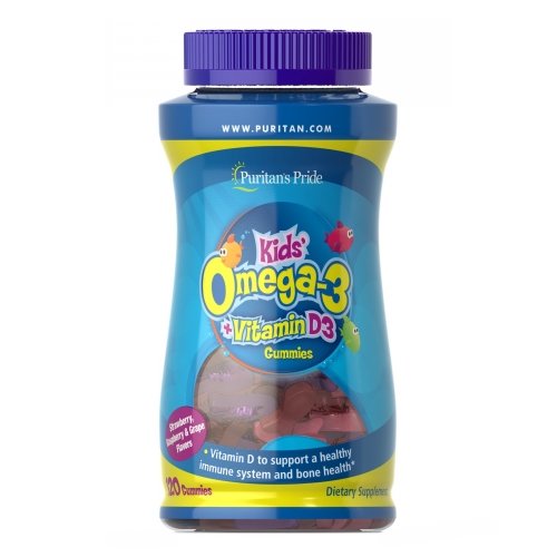 {"id":6868417642581,"title":"Puritan's Pride, Children's Omega 3 DHA \u0026 D3 Gummies, 120 Gummies","handle":"childrens-omega-3-dha-d3-gummies-225031","description":"\u003cstrong\u003eProduct Description\u003c\/strong\u003e\u003cbr\u003e\u003cbr\u003e \u003cbr\u003e\u003cbr\u003e\u003cstrong\u003eProduct Benefits\u003c\/strong\u003e\u003cbr\u003e\n\t\u003cbr\u003e \u003cbr\u003e\u003cbr\u003e\u003cstrong\u003eIngredients\u003c\/strong\u003e\u003cbr\u003e\u003cbr\u003e \u003ctable width=\"100%\" cellspacing=\"0\" cellpadding=\"3\" border=\"1\" bordercolor=\"black\"\u003e\n\u003ctr style=\"border: 1px solid #eaeaea;\"\u003e\u003ctd colspan=\"3\" style=\"padding: 9px 15px;\"\u003e\u003cstrong style=\"font-size:16px;\"\u003eSupplement Facts\u003c\/strong\u003e\u003c\/td\u003e\u003c\/tr\u003e \u003ctr style=\"border: 1px solid #eaeaea;\"\u003e\u003ctd colspan=\"3\" style=\"padding: 9px 15px;\"\u003e\u003cspan class=\"subSpan\"\u003e\u003cspan style=\"float:right\"\u003e\u003cstrong\u003eServing Size:\u003c\/strong\u003e 4 Gummies\u003c\/span\u003e\u003c\/span\u003e\u003c\/td\u003e\u003c\/tr\u003e\n\u003ctr style=\"border: 1px solid #eaeaea;\"\u003e\u003ctd colspan=\"3\" style=\"padding: 9px 15px;\"\u003e\u003cspan class=\"subSpan\"\u003e\u003cstrong\u003eServings Per Container about 30\u003c\/strong\u003e\u003c\/span\u003e\u003c\/td\u003e\u003c\/tr\u003e \u003ctr style=\"border: 1px solid #eaeaea;\"\u003e\n\u003ctd style=\"padding: 9px 15px;\"\u003e\u003c\/td\u003e\n\u003ctd style=\"padding: 9px 15px;\"\u003e\u003cstrong\u003eAmount Per Serving\u003c\/strong\u003e\u003c\/td\u003e\n\u003ctd\u003e\u003cstrong\u003e% Daily Value for Children 2 and 3 Years of Ages % Daily Value for adults and Children 4 Years of Age and Over\u003c\/strong\u003e\u003c\/td\u003e\n\u003c\/tr\u003e \u003ctr style=\"border: 1px solid #eaeaea;\"\u003e\n\u003ctd style=\"padding: 9px 15px;\"\u003eCalories\u003c\/td\u003e\n\u003ctd style=\"padding: 9px 15px;\"\u003e30\u003c\/td\u003e\n\u003ctd style=\"padding: 9px 15px;\"\u003e\u003c\/td\u003e\n\u003c\/tr\u003e\n\u003ctr style=\"border: 1px solid #eaeaea;\"\u003e\n\u003ctd style=\"padding: 9px 15px;\"\u003eTotal Fat\u003c\/td\u003e\n\u003ctd style=\"padding: 9px 15px;\"\u003e0.5 g\u003c\/td\u003e\n\u003ctd style=\"padding: 9px 15px;\"\u003e1%*** 1%**\u003c\/td\u003e\n\u003c\/tr\u003e\n\u003ctr style=\"border: 1px solid #eaeaea;\"\u003e\n\u003ctd style=\"padding: 9px 15px;\"\u003eCholesterol \u003c\/td\u003e\n\u003ctd style=\"padding: 9px 15px;\"\u003e\u0026lt;5 mg\u003c\/td\u003e\n\u003ctd style=\"padding: 9px 15px;\"\u003e\u0026lt;1% \u0026lt;1%\u003c\/td\u003e\n\u003c\/tr\u003e\n\u003ctr style=\"border: 1px solid #eaeaea;\"\u003e\n\u003ctd style=\"padding: 9px 15px;\"\u003eTotal Carbohydrate\u003c\/td\u003e\n\u003ctd style=\"padding: 9px 15px;\"\u003e6 g\u003c\/td\u003e\n\u003ctd style=\"padding: 9px 15px;\"\u003e4%*** 2%**\u003c\/td\u003e\n\u003c\/tr\u003e\n\u003ctr style=\"border: 1px solid #eaeaea;\"\u003e\n\u003ctd style=\"padding: 9px 15px;\"\u003eTotal Sugars\u003c\/td\u003e\n\u003ctd style=\"padding: 9px 15px;\"\u003e4 g\u003c\/td\u003e\n\u003ctd style=\"padding: 9px 15px;\"\u003e**** ****\u003c\/td\u003e\n\u003c\/tr\u003e\n\u003ctr style=\"border: 1px solid #eaeaea;\"\u003e\n\u003ctd style=\"padding: 9px 15px;\"\u003eIncludes 4 g Added Sugars\u003c\/td\u003e\n\u003ctd style=\"padding: 9px 15px;\"\u003e\u003c\/td\u003e\n\u003ctd style=\"padding: 9px 15px;\"\u003e16%*** 8%**\u003c\/td\u003e\n\u003c\/tr\u003e\n\u003ctr style=\"border: 1px solid #eaeaea;\"\u003e\n\u003ctd style=\"padding: 9px 15px;\"\u003eVitamin D (as D3 Cholecalciferol)\u003c\/td\u003e\n\u003ctd style=\"padding: 9px 15px;\"\u003e10 mcg (400 IU) \u003c\/td\u003e\n\u003ctd style=\"padding: 9px 15px;\"\u003e67% 50%\u003c\/td\u003e\n\u003c\/tr\u003e\n\u003ctr style=\"border: 1px solid #eaeaea;\"\u003e\n\u003ctd style=\"padding: 9px 15px;\"\u003eSodium\u003c\/td\u003e\n\u003ctd style=\"padding: 9px 15px;\"\u003e20 mg\u003c\/td\u003e\n\u003ctd style=\"padding: 9px 15px;\"\u003e\u0026lt;1% \u0026lt;1%\u003c\/td\u003e\n\u003c\/tr\u003e\n\u003ctr style=\"border: 1px solid #eaeaea;\"\u003e\n\u003ctd style=\"padding: 9px 15px;\"\u003eFish Oil\u003c\/td\u003e\n\u003ctd style=\"padding: 9px 15px;\"\u003e533 mg\u003c\/td\u003e\n\u003ctd style=\"padding: 9px 15px;\"\u003e**** ****\u003c\/td\u003e\n\u003c\/tr\u003e\n\u003ctr style=\"border: 1px solid #eaeaea;\"\u003e\n\u003ctd style=\"padding: 9px 15px;\"\u003eprovides 163mg of Total Omega-3 Fatty Acids†\u003c\/td\u003e\n\u003ctd style=\"padding: 9px 15px;\"\u003e\u003c\/td\u003e\n\u003ctd style=\"padding: 9px 15px;\"\u003e **** ****\u003c\/td\u003e\n\u003c\/tr\u003e\n\u003ctr style=\"border: 1px solid #eaeaea;\"\u003e\n\u003ctd style=\"padding: 9px 15px;\"\u003ecomprising of:\u003c\/td\u003e\n\u003ctd style=\"padding: 9px 15px;\"\u003e\u003c\/td\u003e\n\u003ctd style=\"padding: 9px 15px;\"\u003e\u003c\/td\u003e\n\u003c\/tr\u003e\n\u003ctr style=\"border: 1px solid #eaeaea;\"\u003e\n\u003ctd style=\"padding: 9px 15px;\"\u003eDocosahexaenoic Acid (DHA)\u003c\/td\u003e\n\u003ctd style=\"padding: 9px 15px;\"\u003e 117mg\u003c\/td\u003e\n\u003ctd style=\"padding: 9px 15px;\"\u003e**** ****\u003c\/td\u003e\n\u003c\/tr\u003e\n\u003ctr style=\"border: 1px solid #eaeaea;\"\u003e\n\u003ctd style=\"padding: 9px 15px;\"\u003eEicosapentaenoic Acid (EPA) \u003c\/td\u003e\n\u003ctd style=\"padding: 9px 15px;\"\u003e24mg \u003c\/td\u003e\n\u003ctd style=\"padding: 9px 15px;\"\u003e**** ****\u003c\/td\u003e\n\u003c\/tr\u003e\n\u003ctr style=\"border: 1px solid #eaeaea;\"\u003e\n\u003ctd style=\"padding: 9px 15px;\"\u003eOther Fatty Acids\u003c\/td\u003e\n\u003ctd style=\"padding: 9px 15px;\"\u003e\u003c\/td\u003e\n\u003ctd style=\"padding: 9px 15px;\"\u003e **** ****\u003c\/td\u003e\n\u003c\/tr\u003e\n\u003ctr style=\"border: 1px solid #eaeaea;\"\u003e\n\u003ctd style=\"padding: 9px 15px;\"\u003e**Percent Daily Values based on a 2,000 calorie diet.\u003c\/td\u003e\n\u003ctd s