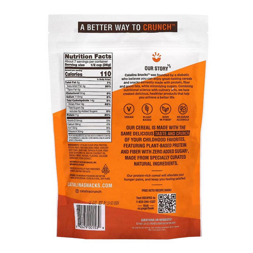 Snacks was founded by a diabetic who believes you can enjoy great tasting cereals and snacks earnestly made with protein, fiber and good fats, while minimizing sugars. Combining nutritional science with culinary arts, we have created delicious, healthier products that help you achieve a better life. Catalina crunch maple waffle cereal is a delicious and nutritious breakfast option. Made with maple syrup and wholesome ingredients, this cereal combines the sweet and comforting taste of maple syrup with a satisfying crunch making it perfect for households or individuals who enjoy a hearty and filling breakfast. This cereal is not only tasty, but it is also gluten free and plant based. Start your day off right with catalina crunch maple waffle cereal.