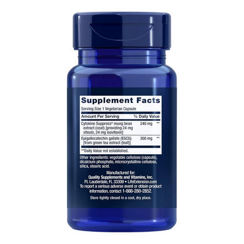 Cytokine suppress combines an extract derived from the coating of mung beans with epigallocatechin gallate, a powerful polyphenol antioxidant from green tea. These two ingredients support the bodys natural processes for modulating both healthy immune and inflammation responses.