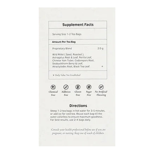 Steep 1-2 tea bags in hot water for 3-5 minutes for hot tea. Steep in hot water and refrigerate for ice-tea. Use 2-4 bags a day.