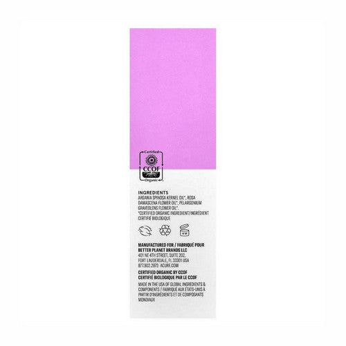 | Ingredients: Argania Spinosa Kernel Oil*, Pelargonium Graveolens Flower Oil*, Rosa Damascena Oil*. *Organic Ingredient. |