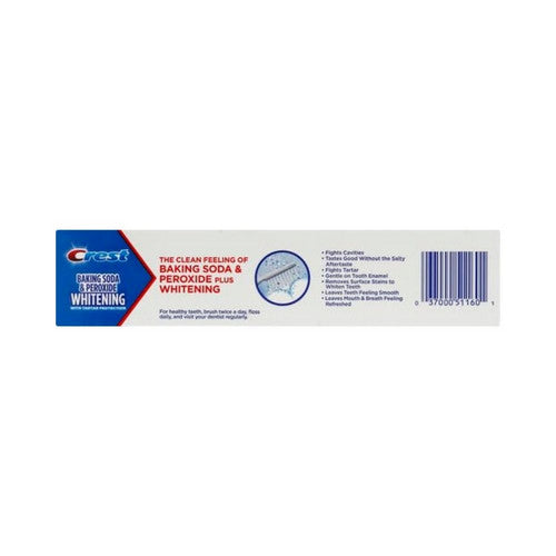 Helps protect against cavities. The clean feeling of baking soda & peroxide plus whitening. Tastes good without the salty aftertaste. Fights tarter. Gentle on tooth enamel. Removes surface stains to whiten teeth. Leaves teeth feeling smooth. Leaves mouth & breath feeling refreshed.